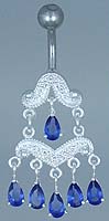 Echt Silber Piercingschmuck mit Anhänger, Banana Stecker und Multi-Schliff Kristallen