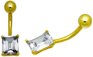 Echt Gelbgold Banana Stecker mit Gold Aufsatz und Glitzerstein.