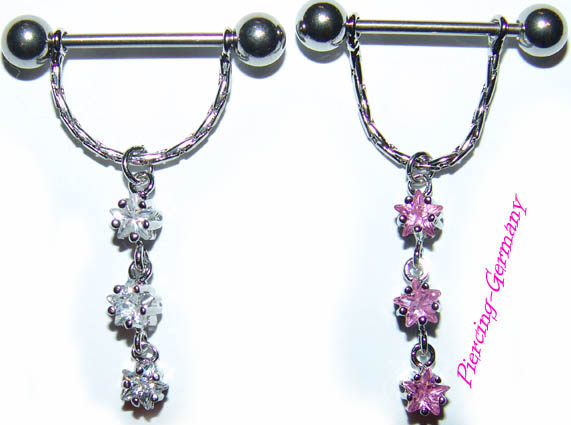 Brustwarzenpiercing/ Nippel Schmuck mit Anhänger und Glitzersteinen.