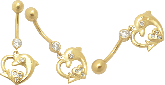 GOLD Delfin Bauchnabelpiercing und Co Schmuck mit Kristallen