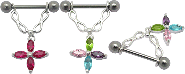 Echt Silber Nippel, Brust Piercing Schmuck mit Blumen Anhänger.