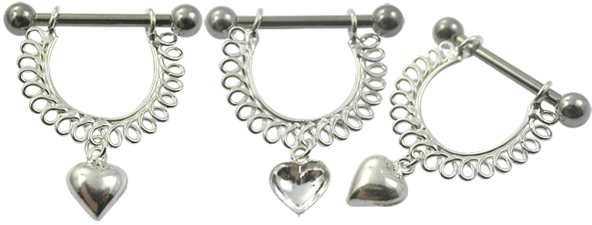 Echt Silber Brustwarzenpiercing Nippel Schild Herz Anhänger