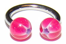 Circular-Barbell/ Hufeisen Piercing Ring mit Pink Bio UV Gewinde Kugeln.