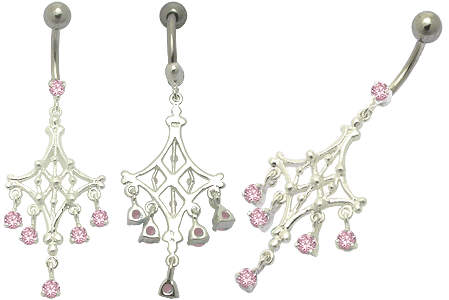 Echt Silber Piercingschmuck mit Anhänger, Banana Stecker und Multi-Schliff Kristallen