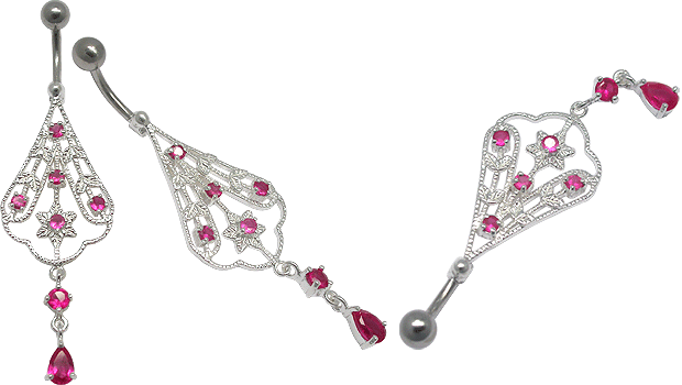 Echt Silber Piercingschmuck mit Anhänger, Banana Stecker und Multi-Schliff Kristallen