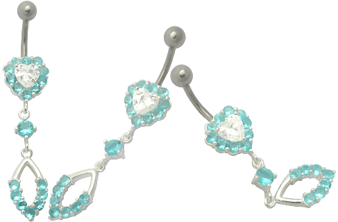 Echt Silber Piercing Herz mit Anhänger, Banana Stecker und Multi-Schliff Kristallen