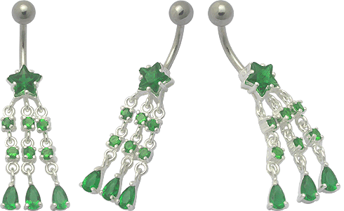 Echt Silber Piercingschmuck Stern mit Anhänger, Banana Stecker und Multi-Schliff Kristallen