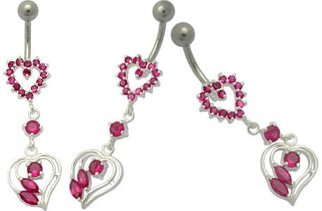 Echt Silber Piercingschmuck Herz mit Anhänger, Banana Stecker und Multi-Schliff Kristallen