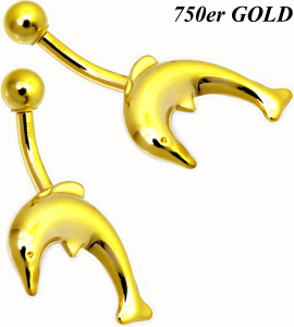 Material: Piercingschmuck Stecker, die Kugel und Delfin aus 18kt / 750er echt Gold