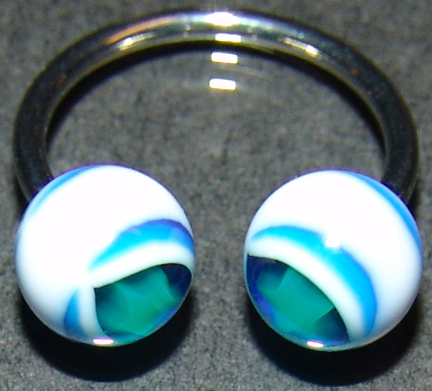 Titan Circular-Barbell/ Hufeisen Piercing Ring mit Bio UV Blau Weißen Stern Kugeln.