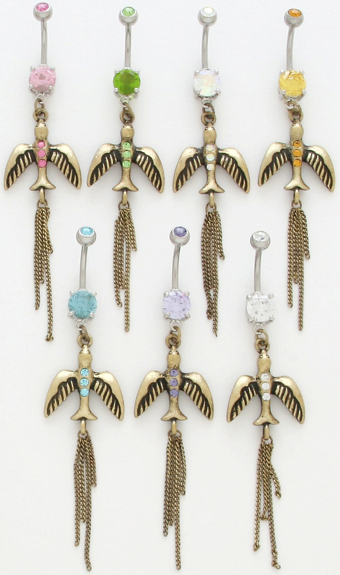 Bauchnabelpiercing & Co Piercingschmuck Banana Stecker mit Schwalben Vogel Anhänger.
