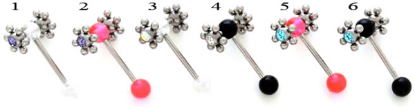 Multi Ball Zungenpiercing Barbell Stecker mit Kristallen