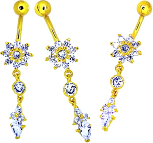 Material: Piercing Stecker + Kugel + Anhänger komplett aus 14kt / 585er echt Gelb Gold
