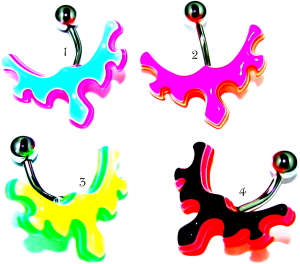 Piercingschmuck Aufsatz Farben: Hellblau + Lila + Rosa (Color 3), Lila + Weiß + Orange (Color 4), Gelb + Grün + Grün (Color 1) und Schwarz + Rosa + Orange (Color 2)