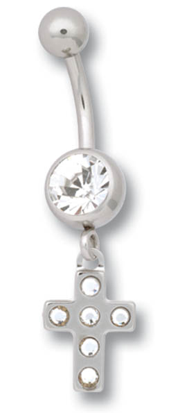 Chirurgenstahl Piercing Schmuck Banana Stecker mit Multi Crystal Kreuz Anhänger.