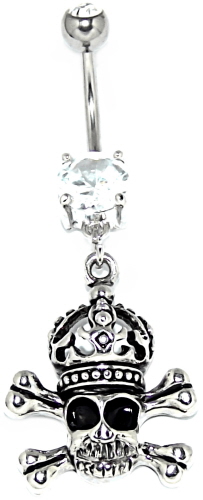 Totenkopf Krone mit Anhänger Bauchnabel und Co Piercingschmuck mit Glitzerstein