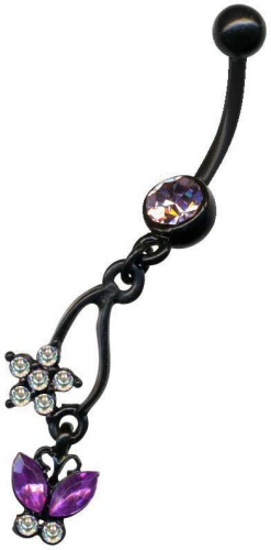 Schwarzer Chirurgenstahl Bauchnabel & Co Schmuck mit Schmetterling Anhänger
