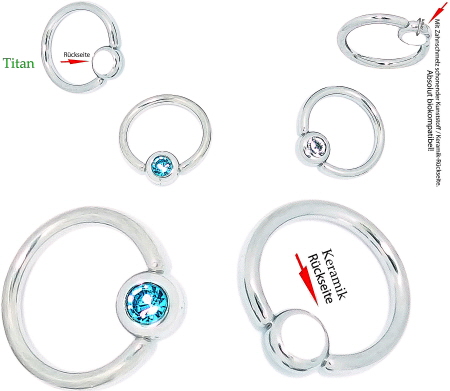 Material: Piercing Ring und Kugel aus Titan-Hochglanzpoliert mit Swarovski Kristall Stein. Rückseite der Kugel ist mit Spezial Keramik besetzt, daher ist der Schmuck auch sehr gut für das Lippenbändchen Piercing geeignet.