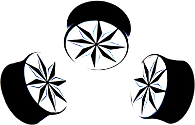 Schwarz Ohr Piercing Gewinde Flesh Tunnel mit 3-D Schwarz Weiß Stern Logo.