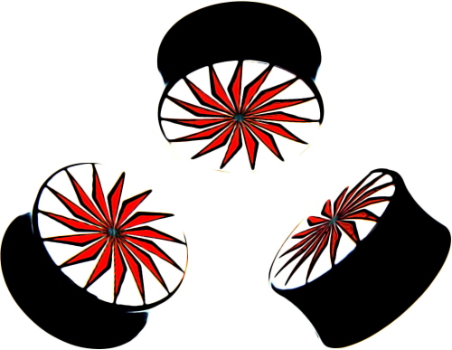 Schwarz Ohr Piercing Gewinde Flesh Tunnel mit 3-D Schwarz Rot Stern Logo.