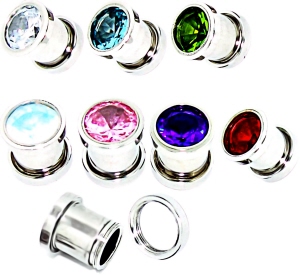 Material: Piercingschmuck Flesh Tunnels aus Chirurgenstahl mit Zirkonia Steine