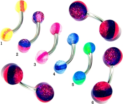 Material: Piercing Banana Stecker aus Titan Hochglanzpoliert oder Chirurgenstahl und Multi Color gestreifte Kristall Kugeln aus Bio-Synthetik