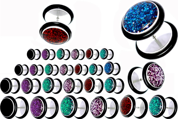 Material: Piercing-Stecker Titan Hochglanzpoliert oder Chirurgenstahl, Plugs Aufsätze aus Chirurgenstahl mit Glitzer und Gummi Ring.