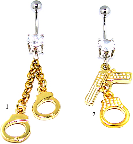 Material: Piercing-Stecker und Kugel aus Titan Hochglanzpoliert oder Chirurgenstahl, mit Kristall Steinen und Golden Handschellen Anhänger.
