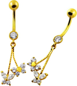Gold Bauchnabelpiercing und Co mit Schmetterling Anhänger und Kristallen