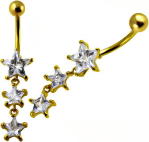 Material: Piercing Stecker + Kugel + Stern Fassung und Anhänger aus 14kt / 585er echt Gelb Gold mit Multi-Schliff Zirkonia