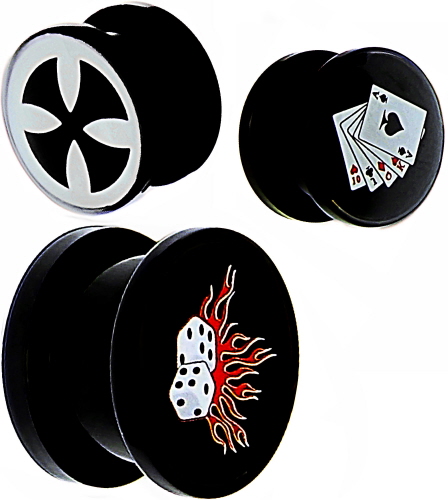 Material: Piercing Flesh-Tunnels aus Schwarz Ohr Piercingschmuck Plug Hochglanz Chirurgenstahl Multi Schliff Stein mit Logo