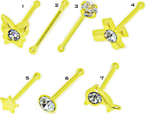 Piercingschmuck Form: Schmetterling (1), Hantel (2), Glitzer-Kugel (3), Kreuz (4), Stern (5), Glitzer-Kugel (6), Delfin (7) (Siehe Bild)