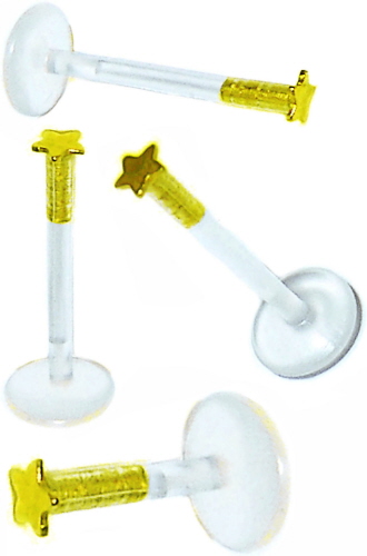 Material: Piercingschmuck Flat-Back Stecker aus Bio-Synthetik und Stern aus 14kt / 585er Echt Gold