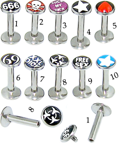 Material: Piercingschmuck Stecker und aus Titan Hochglanzpoliert oder Chirurgenstahl und Logo Gewinde Aufsatz aus Chirurgenstahl