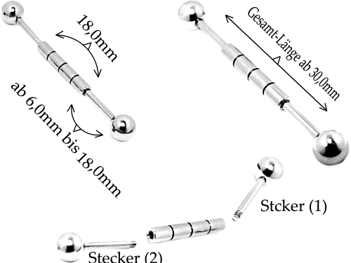 Piercing Stecker (2) Länge: 6, 8, 10, 12, 14, 16, 18mm