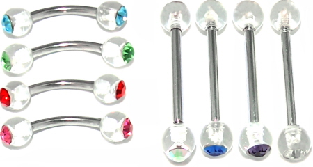 Material: Piercing-Stecker aus Titan-Hochglanzpoliert oder Chirurgenstahl, Piercingschmuck Kugeln aus Biosynthetik/ Biokunststoff mit Zirkonia Glitzerstein