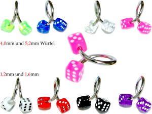 Material: Piercing Spirale aus Titan Hochglanzpoliert oder Chirurgenstahl und die Würfel aus Bio-Synthetic