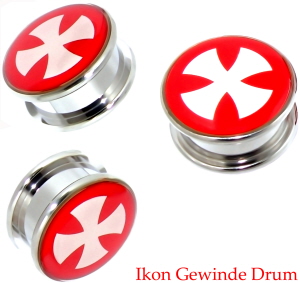 Material: Steel Ikon Ear Drum Red/White Cross, Schmuck