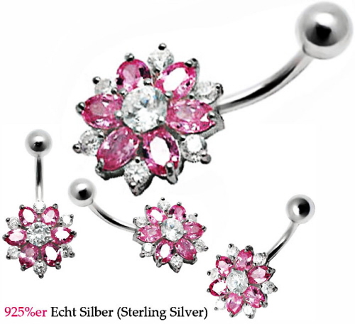 Material: Piercing Banana Stecker aus Titan Hochglanzpoliert oder Chirurgenstahl und Blume Aufsatz aus 925 echt Silber (Sterling Silber) (Die Rückseite von dem Piercing-Schmuck Aufsatz wurde mit Zeichen 925 gestempelt)