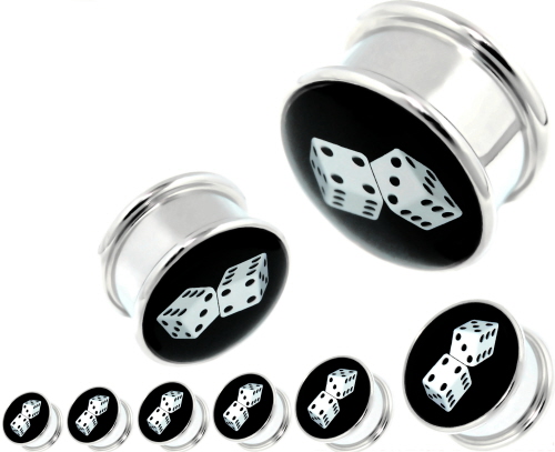 Material: Steel Ikon Ear Drum Dice, Schmuck in Form ähnlich eines Zylinders aus 316L Chirurgenstahl für gedehnte Ohren. Die Plugs haben einen durchgängig gleichen Durchmesser, d.h. bei der Auswahl der Schmuckgröße kann exakt der Wert genommen werden, auf das das Piercing auch bereits gedehnt ist. Die Platte mit dem Motiv ist zum abschrauben, der Plug hat ein innen liegendes Gewinde, d.h. der Schmuck kann besonders leicht in den Stichkanal eingesetzt werden. Die genauen Maße werden in einer Zusatzgrafik angezeigt. Die Plugs sind nicht sterilisierbar und aufgrund des Materials für den beschriebenen Einsatz unbedenklich