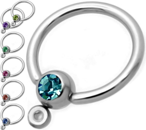 Chirurgenstahl oder Titan Klemmkugelring mit Klemmkugel Kristall Ball (Kugel)
