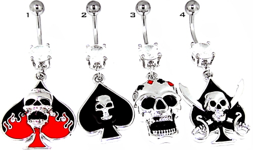 Bauchnabelpiercing mit Totenkopfanhänger und Kristall