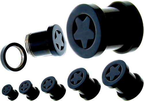 Flesh-Tunnel Plug Art: Schwarz Stern Flesh-Tunnel mit Schraub-Gewinde Platte (Siehe Bild)