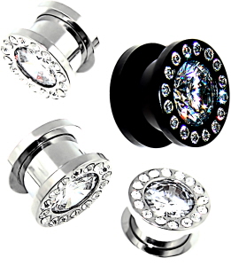 Ohr Flesh Tunnel Art: Gewinde Flesh Tunnel Hochglanz oder Schwarz mit Kristallen (Siehe Bild)