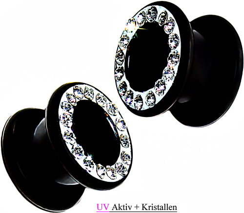 Ohr Flesh Tunnel Art: Gewinde Flesh Tunnel Schwarz mit Kristallen und UV Aktiv (Siehe Bild)