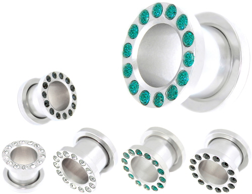 Ohr Flesh Tunnel Kristall Farben: Crystal-Clear, Schwarz, Grün (Siehe Bild)