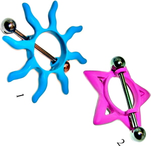 Material: Piercingschmuck Hantel/ Barbell Stecker aus Titan Hochglanzpoliert oder Chirurgenstahl und Die Kegel aus Chirurgenstahl Hochglanzpoliert mit Color Nippel Schild
