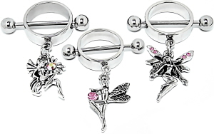 Material: Piercingschmuck Stecker, Kugeln aus Titan Hochglanzpoliert oder Chirurgenstahl und Rundnippel Schild aus Massiv Chirurgenstahl Hochglanzpoliert mit Engel Nippel Schild Anhänger und Glitzerstein