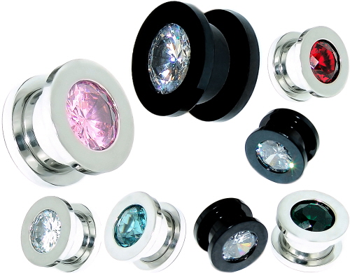 Chirurgenstahl Hochglanz Poliert oder Schwarz Flesh-Tunnel mit Multi-Schliff Kristall