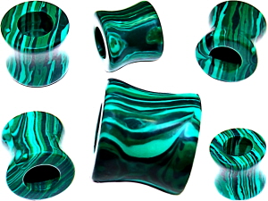 Material: Piercingschmuck Ohr Plugs aus Echt Malachit (Gestein) Stein mit Grün und Schwarze Muster